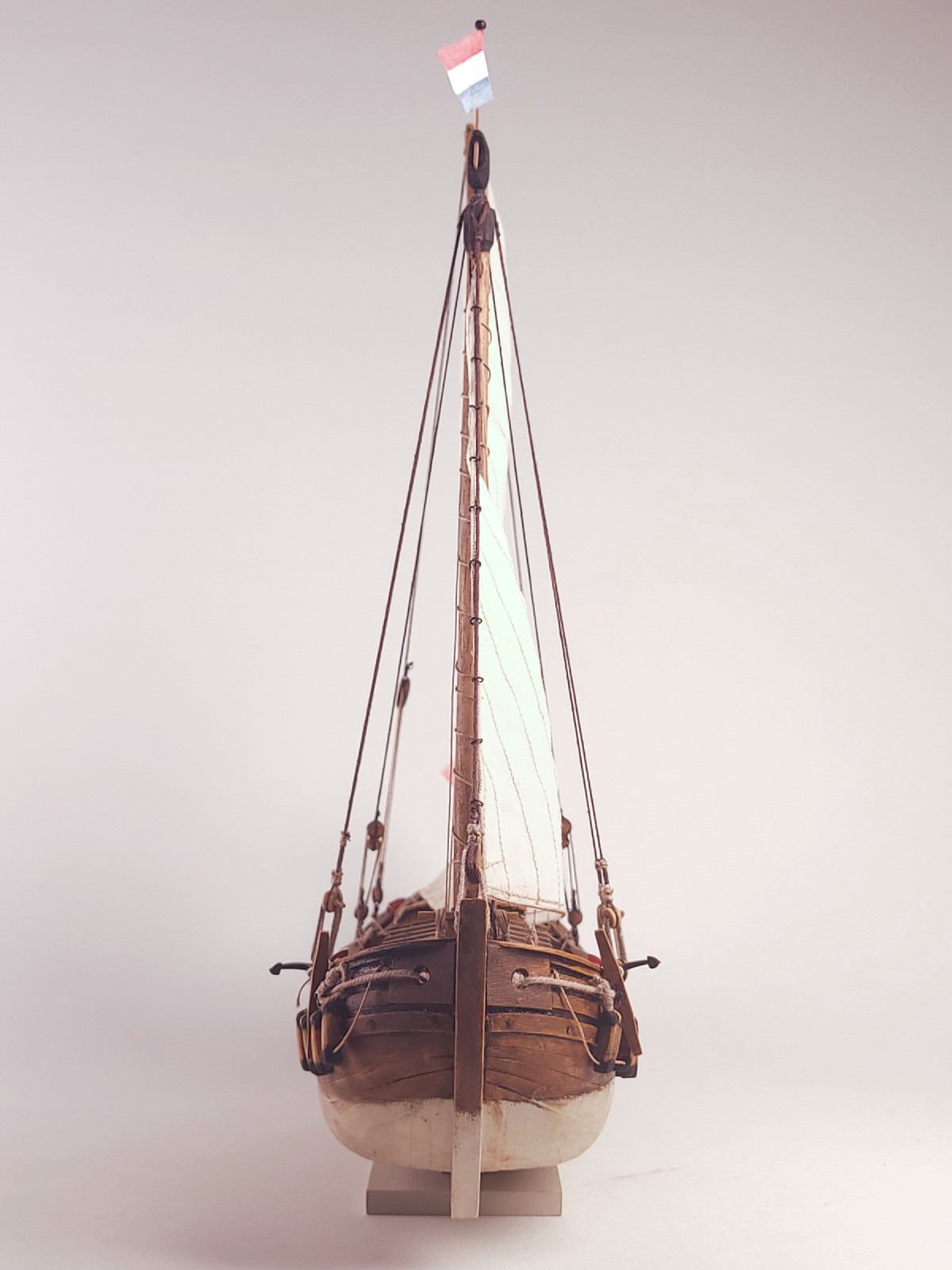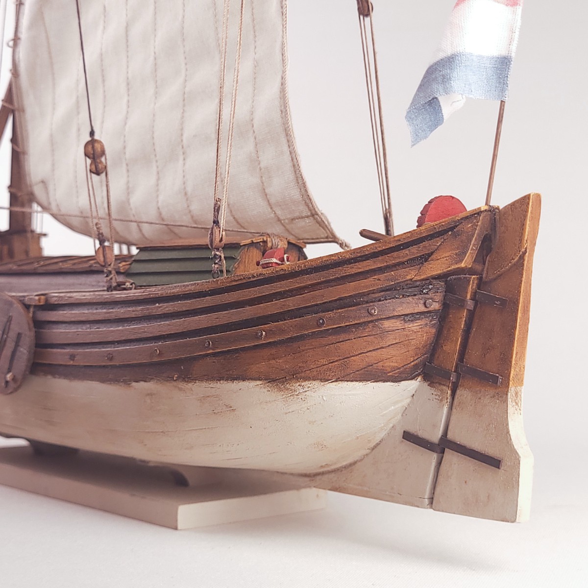 The scale of this model is 1:72, the same as the scale of some larger ship models released by Kolderstok, such as the Batavia and the Zeven Provinciën. Wide ships were used, among other things, to transport goods and personnel to these types of ships, which were waiting in the Texel roadstead for their voyage across the ocean. When the models are placed side by side, it becomes clear how impressive these ships must have been in the eyes of their future passengers.